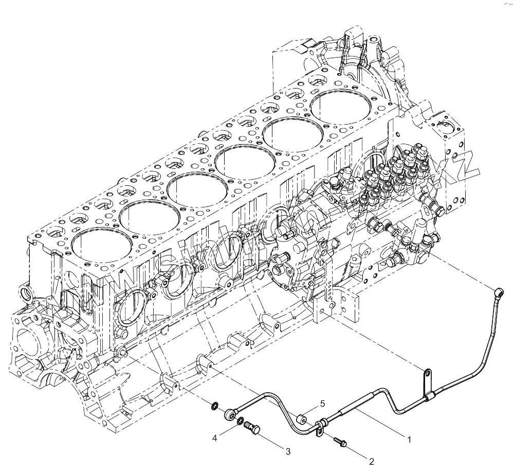 Каталог запасных частей к технике: Weichai 6M11 DHM16D0001. Fuel Injection Pump Oil Pipe Group