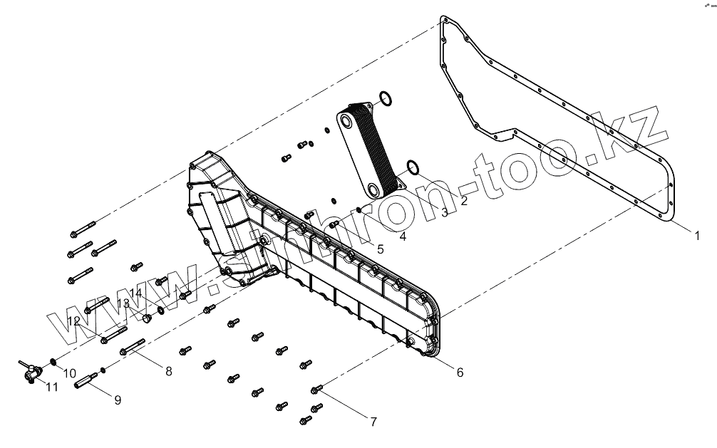Каталог запасных частей к технике: Weichai 6M11 DHM16D0001. Oil Cooler Group