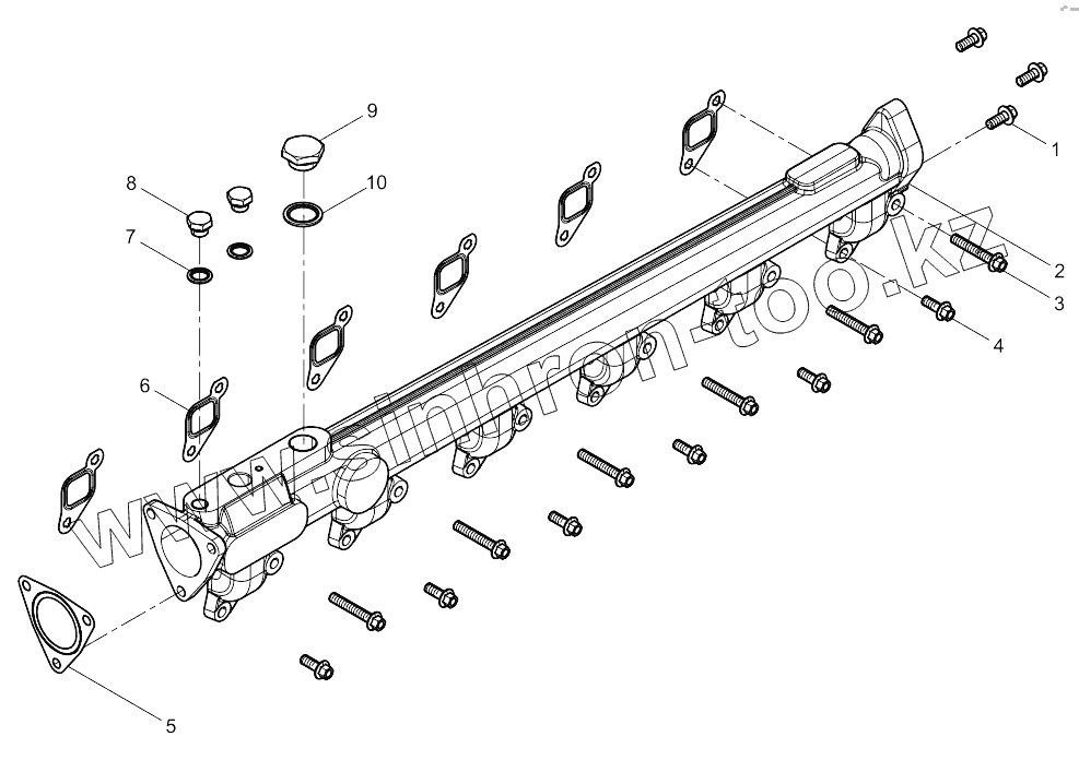 Каталог запасных частей к технике: Weichai 6M11 DHM16D0001. Water Outlet Pipe Group
