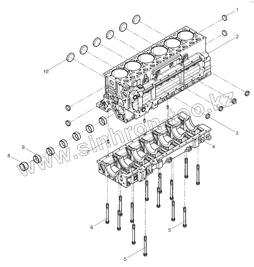 Каталог запасных частей к технике: Weichai 6M11 DHM16D0002. Cylinder Block Preassembly