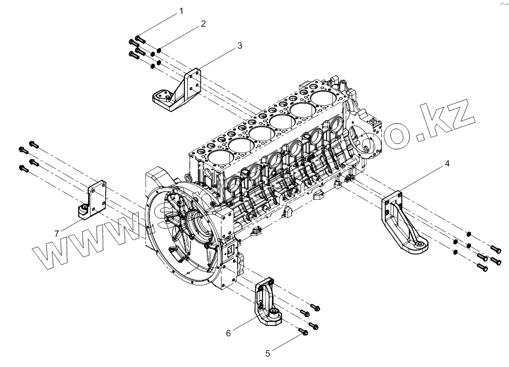 Каталог запасных частей к технике: Weichai 6M11 DHM16D0002. Engine Bracket Group