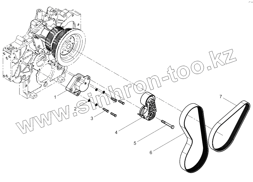 Каталог запасных частей к технике: Weichai 6M11 DHM16D0002. Tensioner And Belt Group