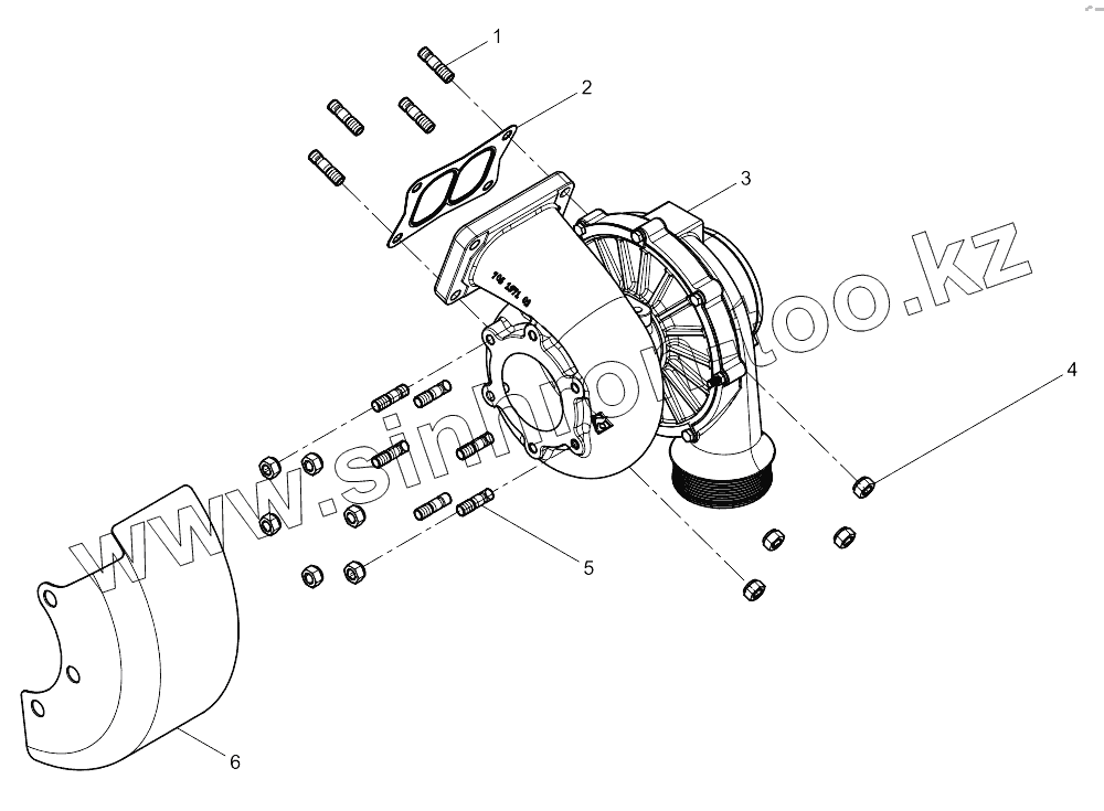Каталог запасных частей к технике: Weichai 6M11 DHM16D0002. Turbocharger Group