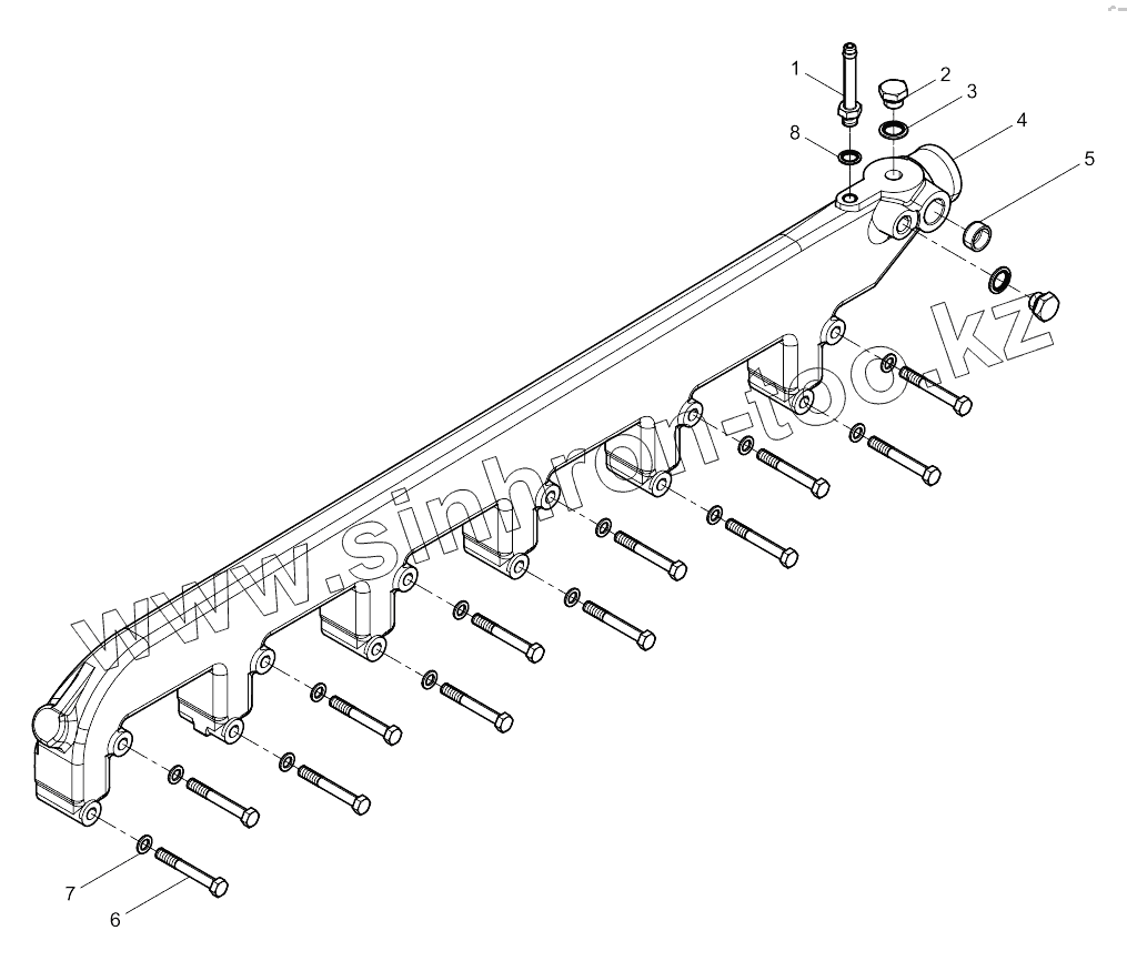 Каталог запасных частей к технике: Weichai 6M11 DHM16D0002. Water Outlet Pipe Group