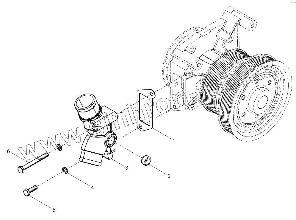 Каталог запасных частей к технике: Weichai 6M11 DHM16D0002. Water Pipe Connector Group