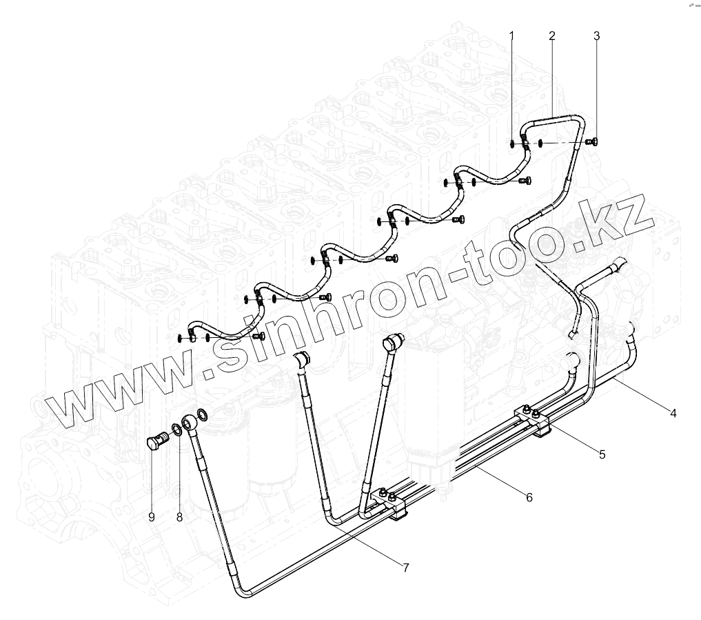 Каталог запасных частей к технике: Weichai 6M11 DHM16D0006. Low Pressure Fuel Pipe Group