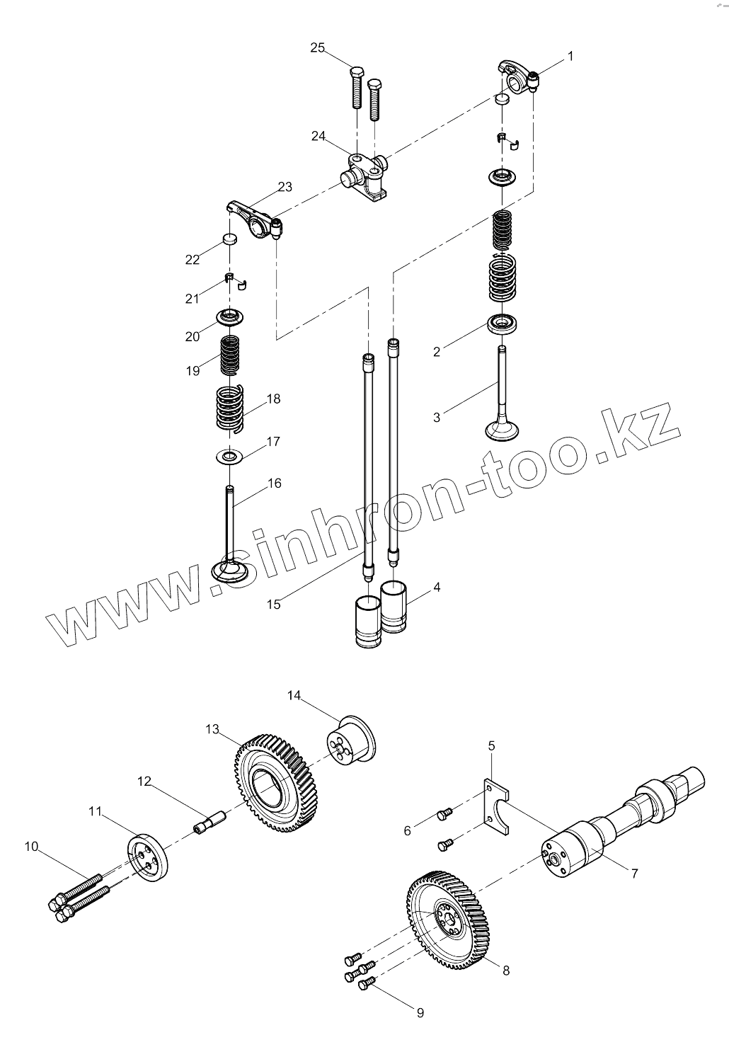 Каталог запасных частей к технике: Weichai 6M11 DHM16D0006. Valve Train Group