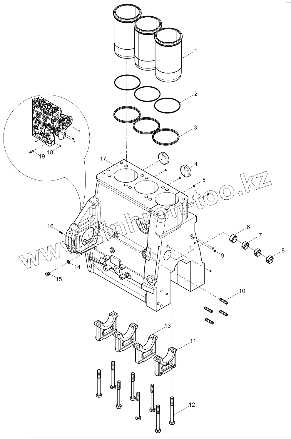 Каталог запасных частей к технике: Weichai BAUDOUIN 3M10. Crankcase assembly