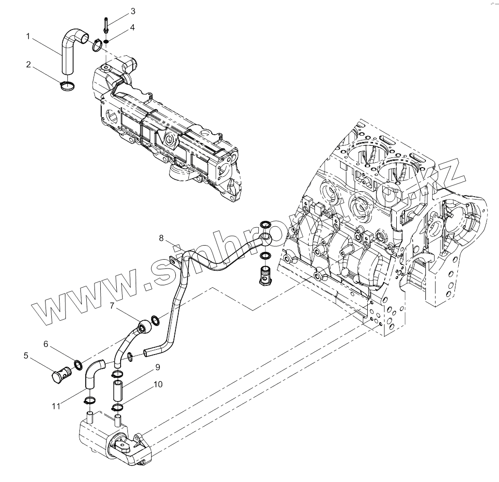 Каталог запасных частей к технике: Weichai BAUDOUIN 3M10. Oil Cooler Coolant Pipe Group