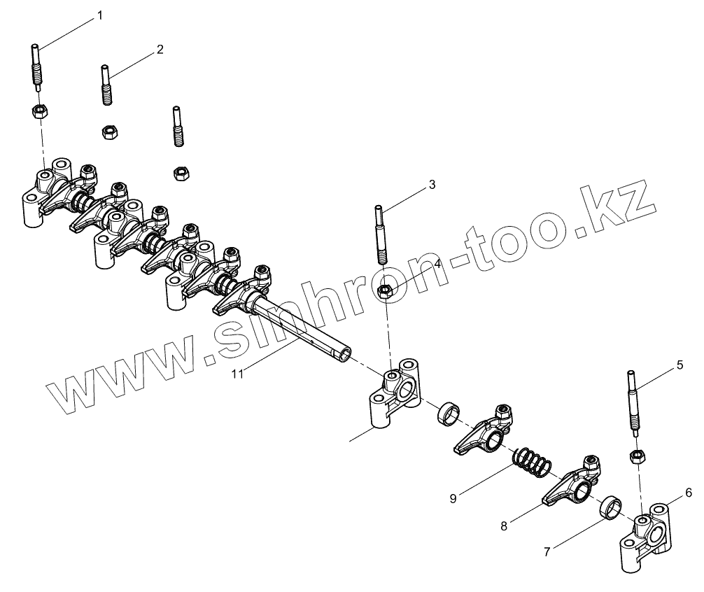 Каталог запасных частей к технике: Weichai BAUDOUIN 4M06G44. Integrated Rocker Arm Shaft Assembly