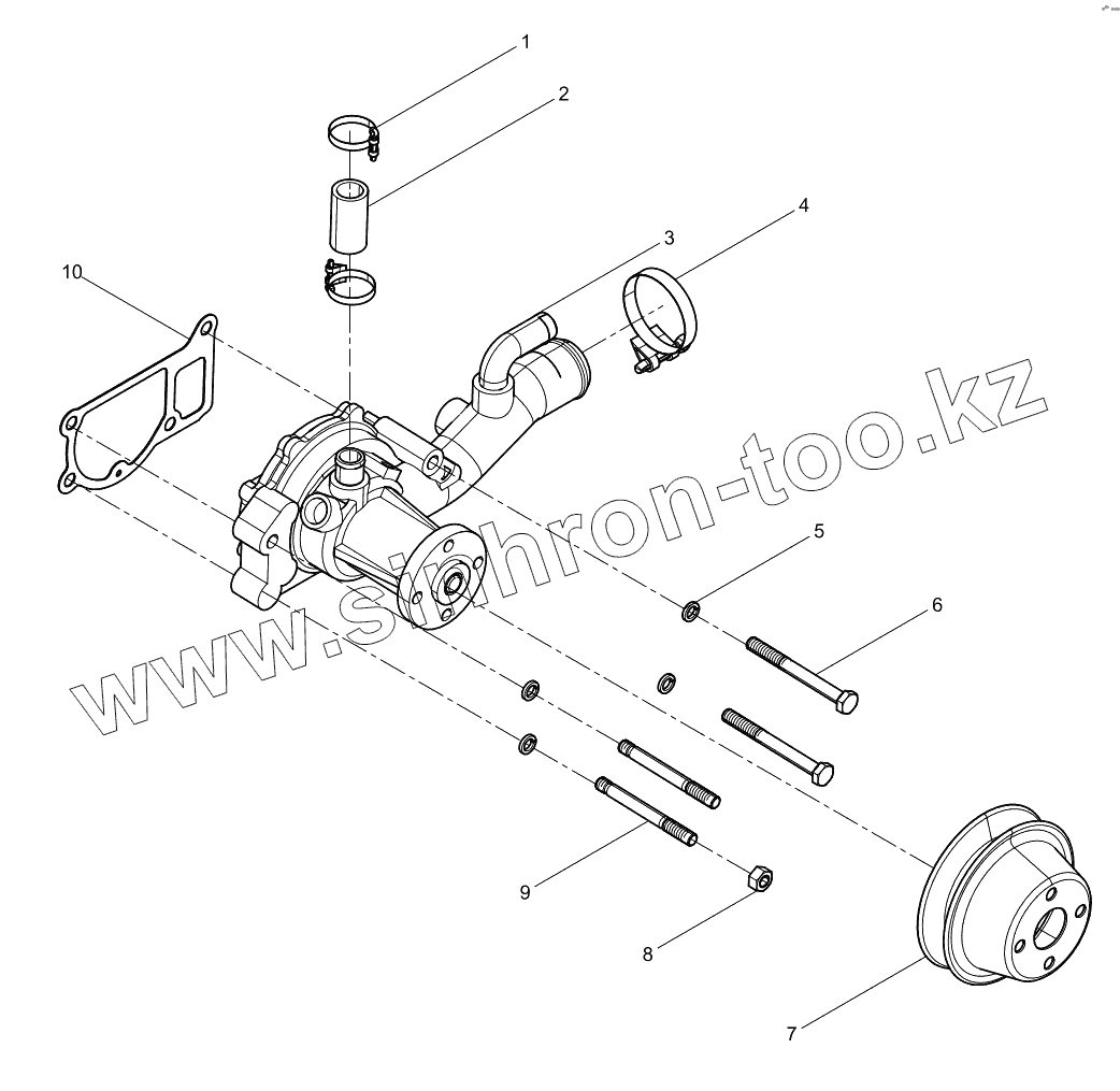 Каталог запасных частей к технике: Weichai BAUDOUIN 4M06G44. Water Pump Group