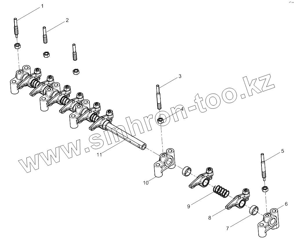 Каталог запасных частей к технике: Weichai BAUDOUIN 4M06G50. Integrated Rocker Arm Shaft Assembly