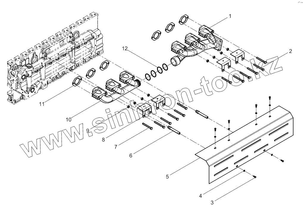 Каталог запасных частей к технике: Weichai WD10 DHD10C0009. Exhaust Manifold Group
