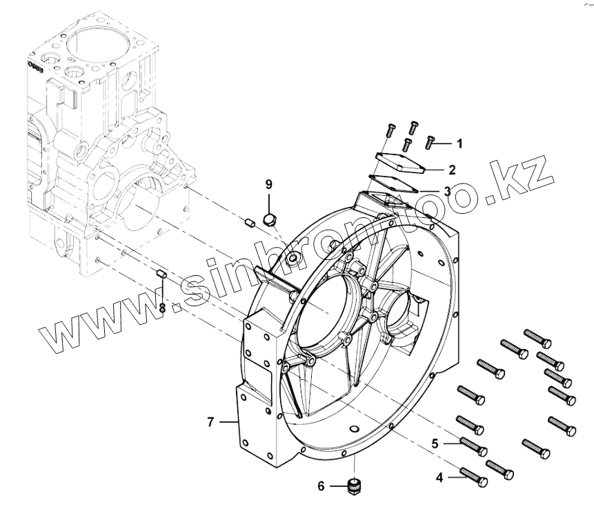 Каталог запасных частей к технике: Weichai WD10 G220E23. Flywheel housing group
