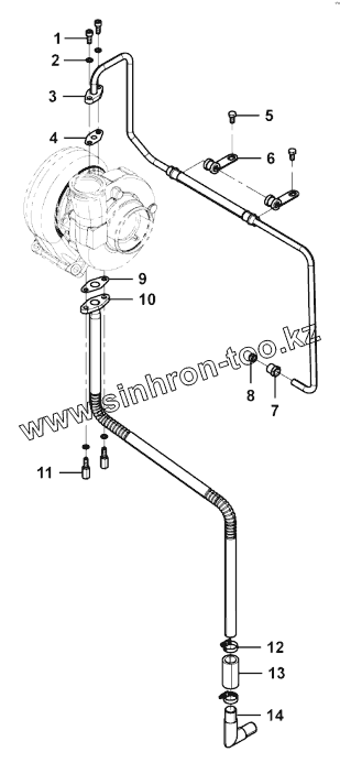Каталог запасных частей к технике: Weichai WD10 G220E23. Turbocharger oil pipe group