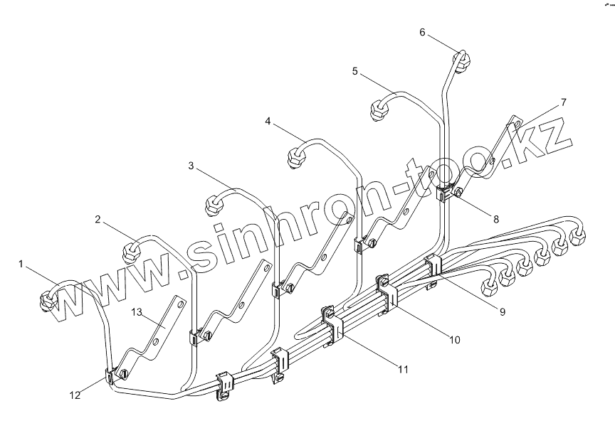 Каталог запасных частей к технике: Weichai WD10G178E25 (Евро 2). High pressure pipe assembly