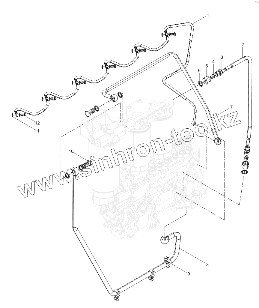 Каталог запасных частей к технике: Weichai WD10G178E25 (Евро 2). Low Pressure Oil pipe Group
