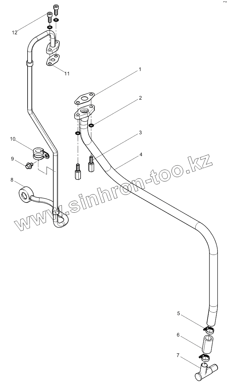 Каталог запасных частей к технике: Weichai WD10G178E25 (Евро 2). Turbocharger Oil pipe Group