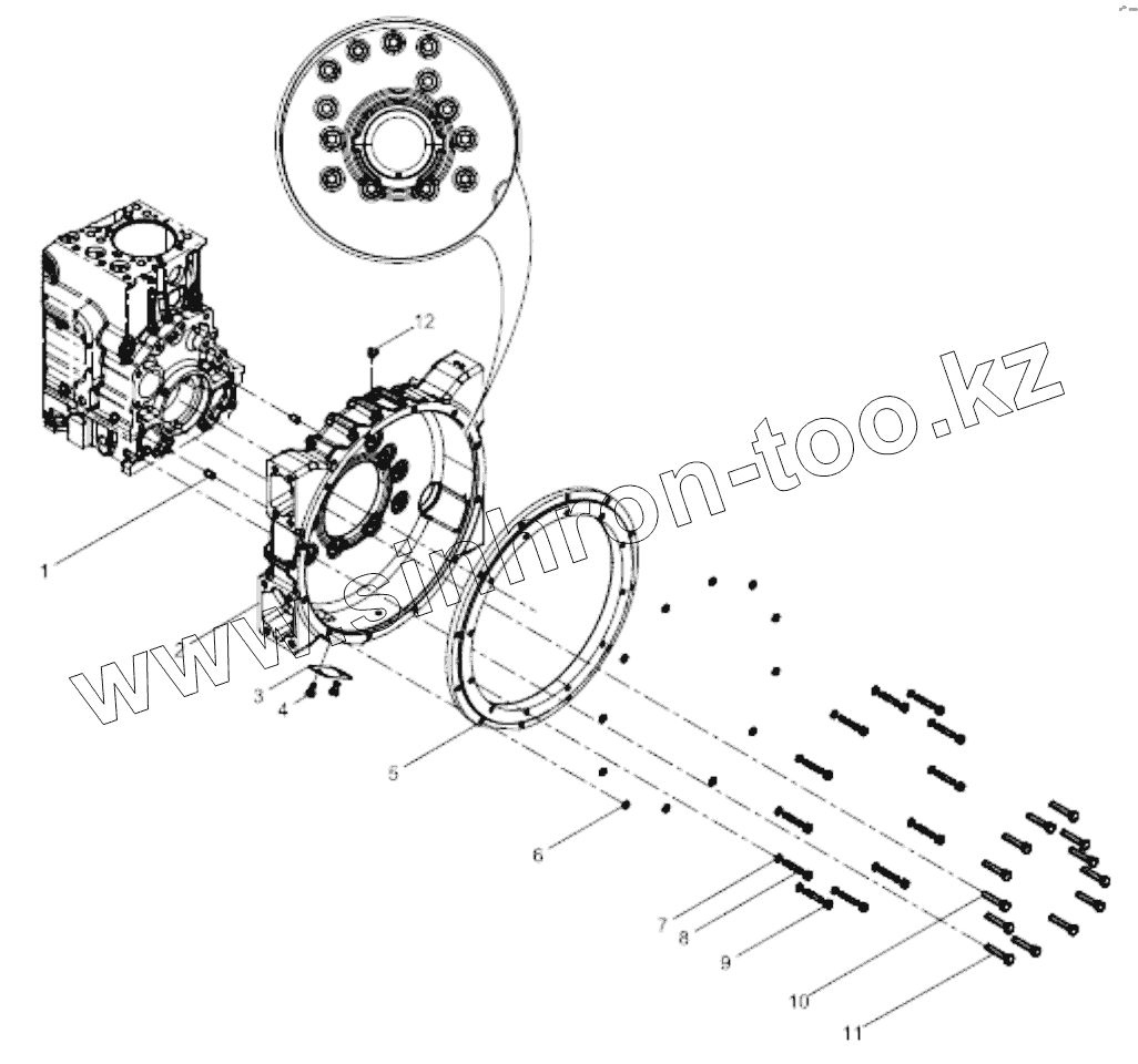 Каталог запасных частей к технике: Weichai WD10G220E21. Flywheel housing group