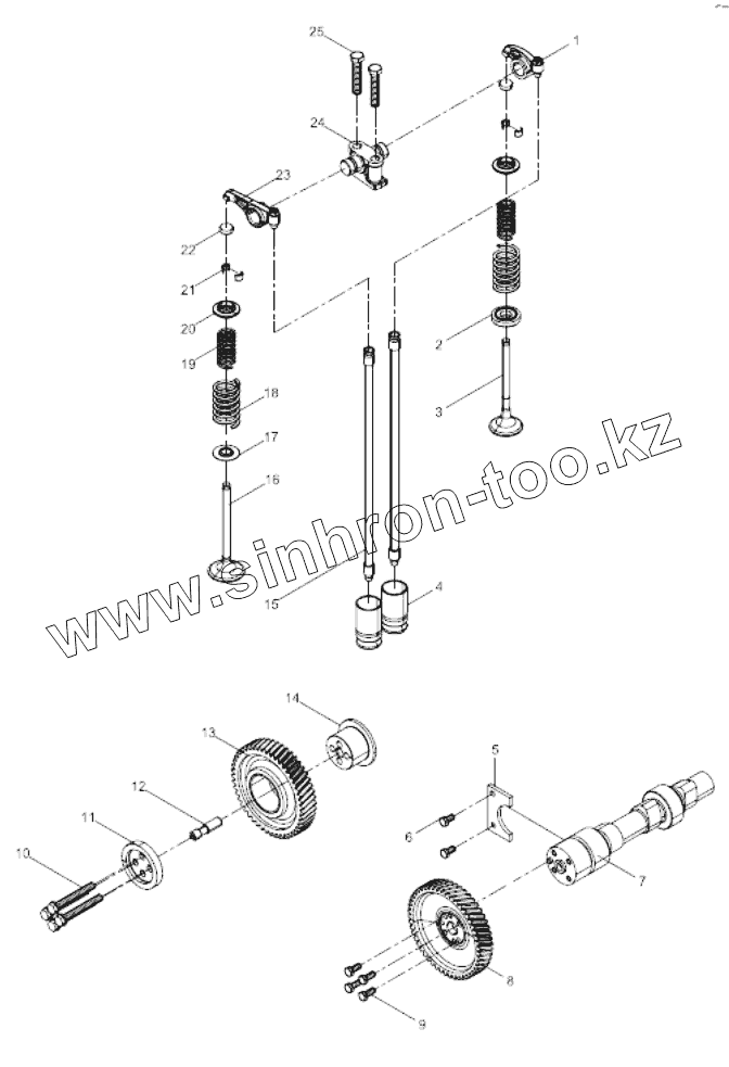 Каталог запасных частей к технике: Weichai WD10G220E21. Valve train mechanism group