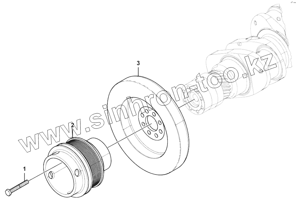 Каталог запасных частей к технике: Weichai WD10G220E21. Crankshaft pulley group
