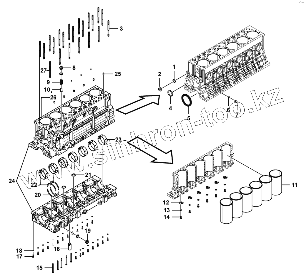 Каталог запасных частей к технике: Weichai WD10G220E21. Engine block group
