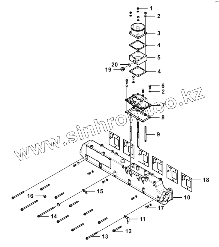 Каталог запасных частей к технике: Weichai WD10G220E21. Intake manifold group