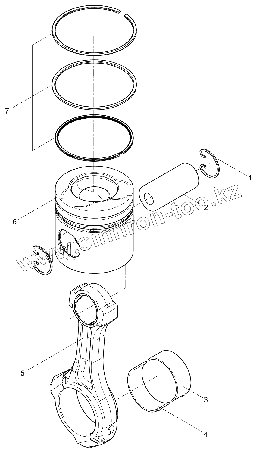 Каталог запасных частей к технике: Weichai WD10G220E22. Connecting rod and piston