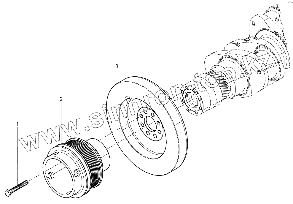 Каталог запасных частей к технике: Weichai WD10G220E22. Crankshaft Pulley Group