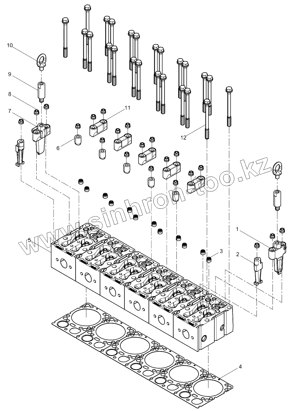 Каталог запасных частей к технике: Weichai WD10G220E22. Cylinder head assembly