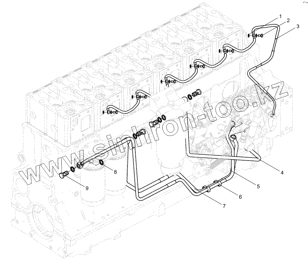 Каталог запасных частей к технике: Weichai WD10G220E22. Low Pressure Oil pipe Group