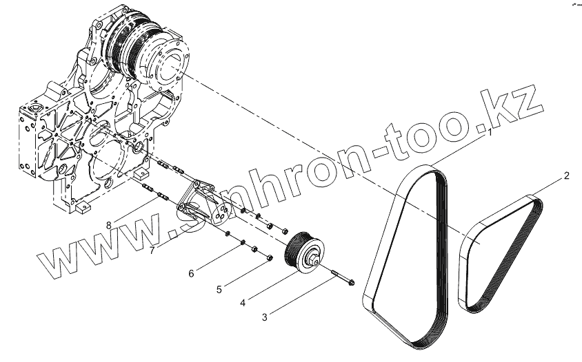 Каталог запасных частей к технике: Weichai WD10G220E23 (Евро 2). Tensioner and Belt Assembly