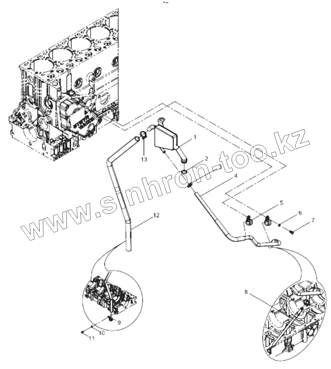 Каталог запасных частей к технике: Weichai WD12.420. Oil-gas separator group