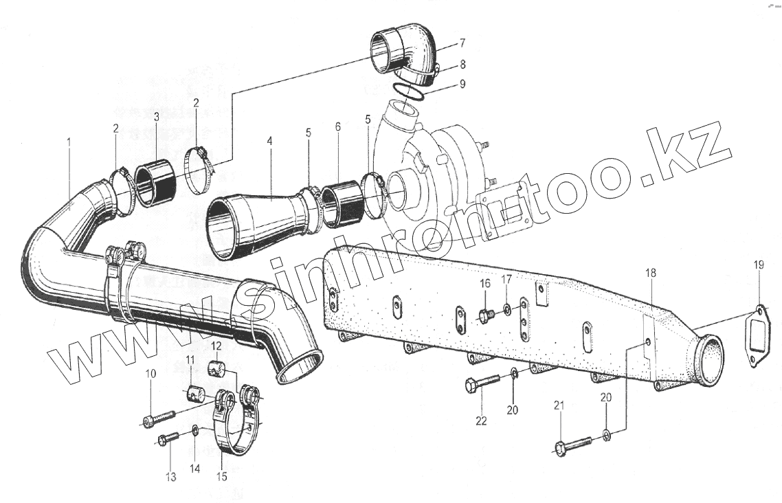 Каталог запасных частей к технике: Weichai WD615 (Евро 2). Воздухопровод компрессора