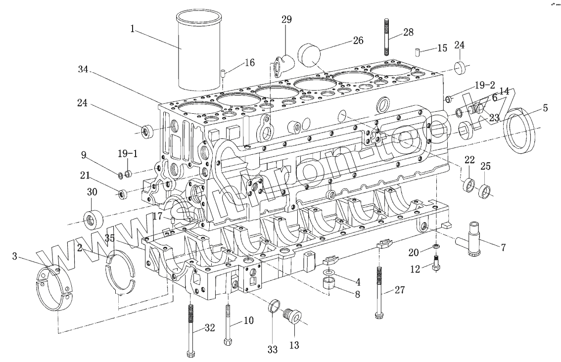 Каталог запасных частей к технике: Weichai WD615 (Евро 3). Корпус цилиндра