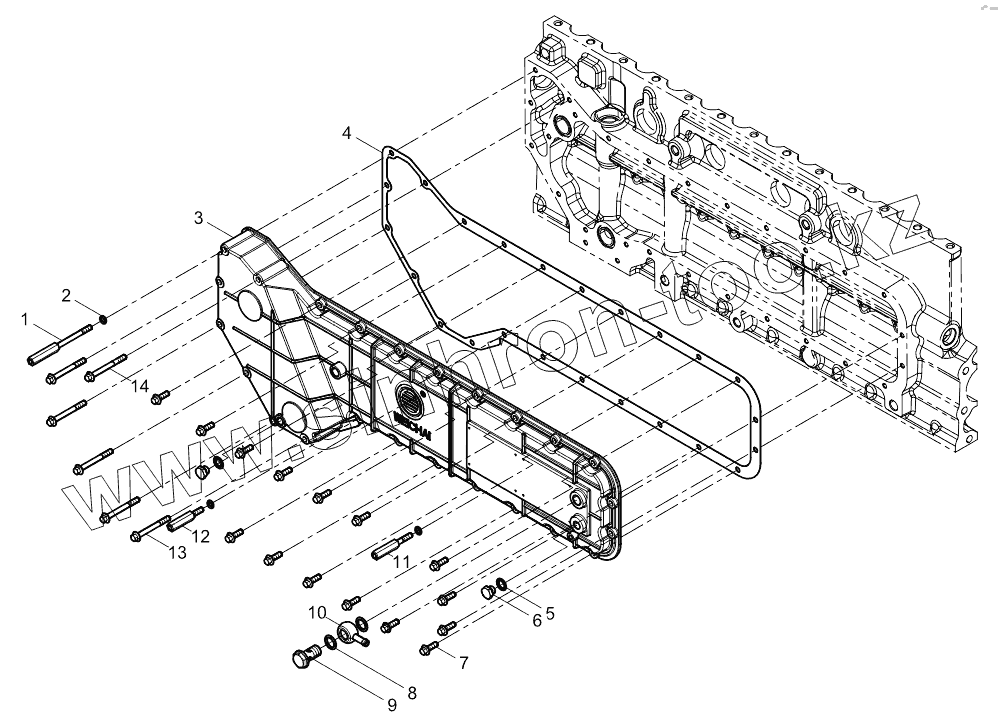 Каталог запасных частей к технике: Weichai WP10336E40 (Евро 4). Oil cooler cover combined with group