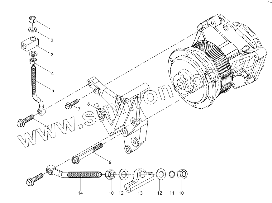Каталог запасных частей к технике: Weichai WP10336N (Евро 3). Generator Bracket Group