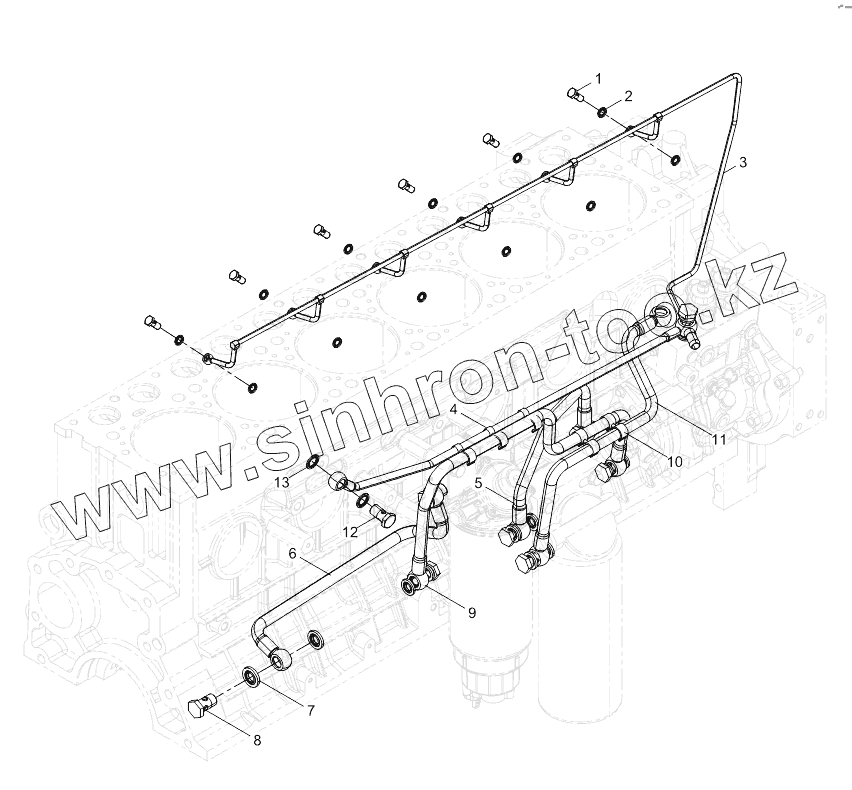 Каталог запасных частей к технике: Weichai WP10336N (Евро 3). Low Pressure Oil pipe Group