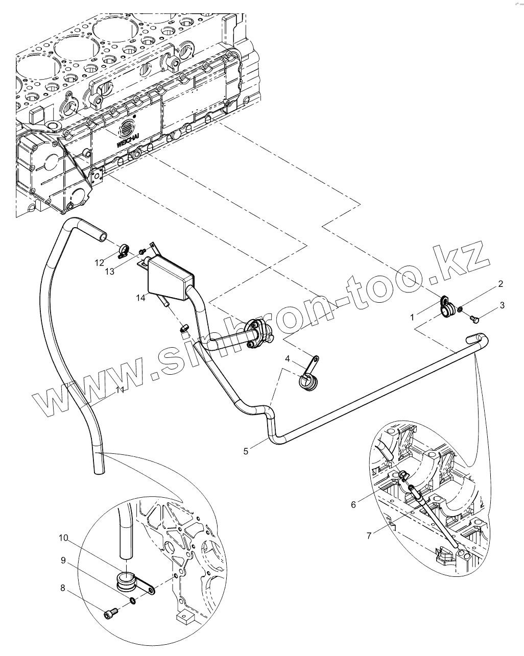 Каталог запасных частей к технике: Weichai WP10336N (Евро 3). Oil-gas Separator Group