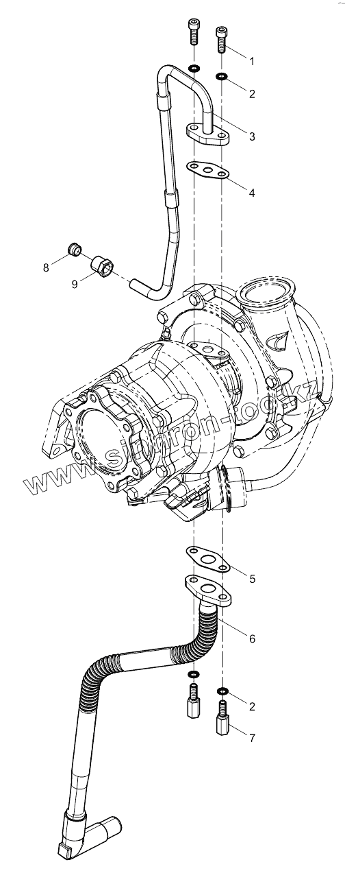 Каталог запасных частей к технике: Weichai WP10336N (Евро 3). Turbocharger Oil pipe Group