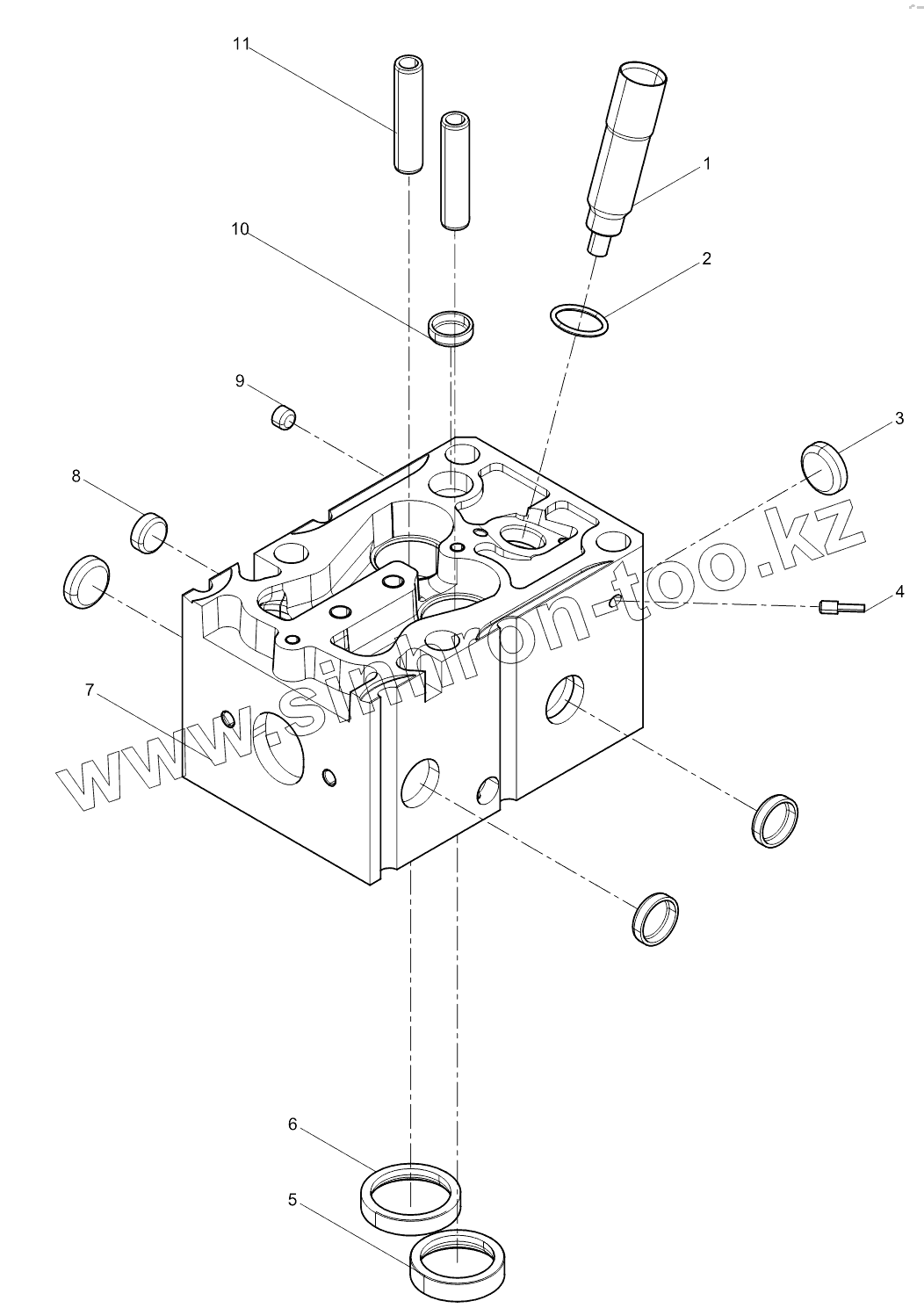Каталог запасных частей к технике: Weichai WP10340E32 (Евро 2). Cylinder head subassembly