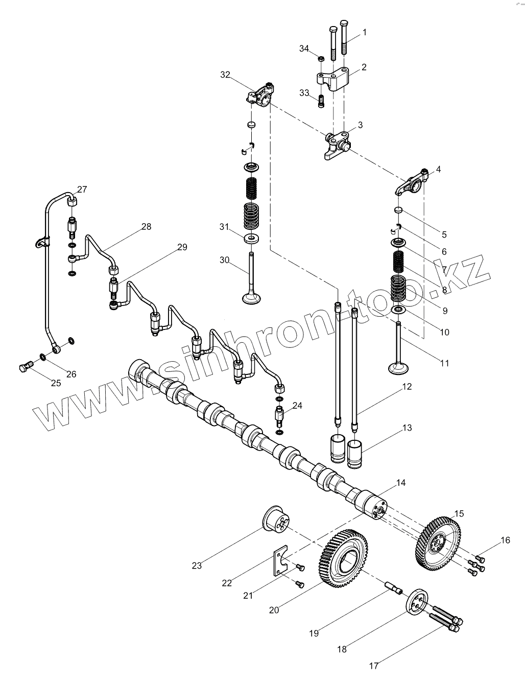 Каталог запасных частей к технике: Weichai WP10340E32 (Евро 2). Valve Train Group
