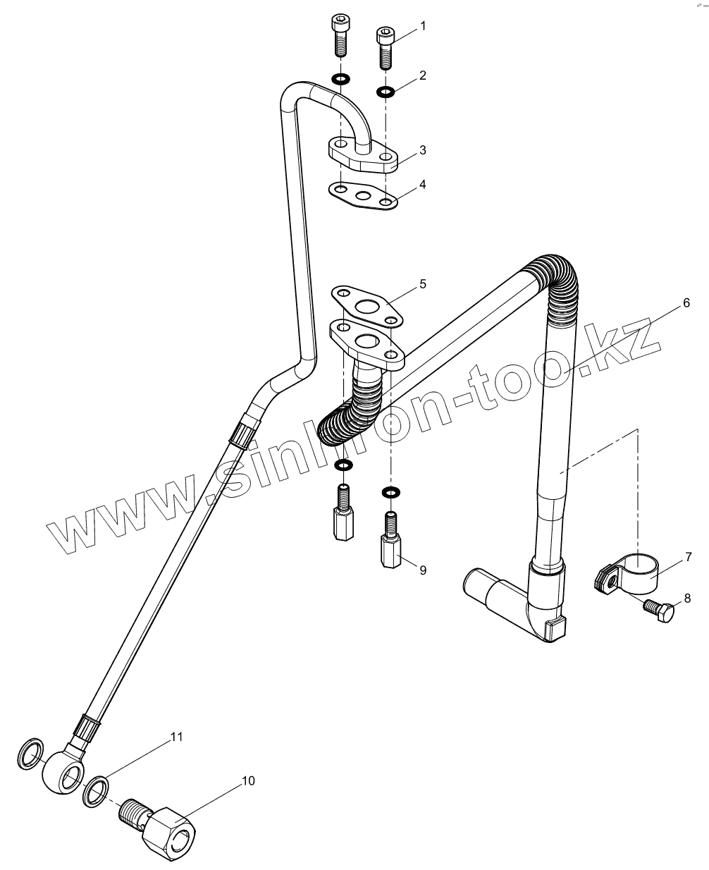 Каталог запасных частей к технике: Weichai WP10.336E40. Turbocharger Oil pipe Group