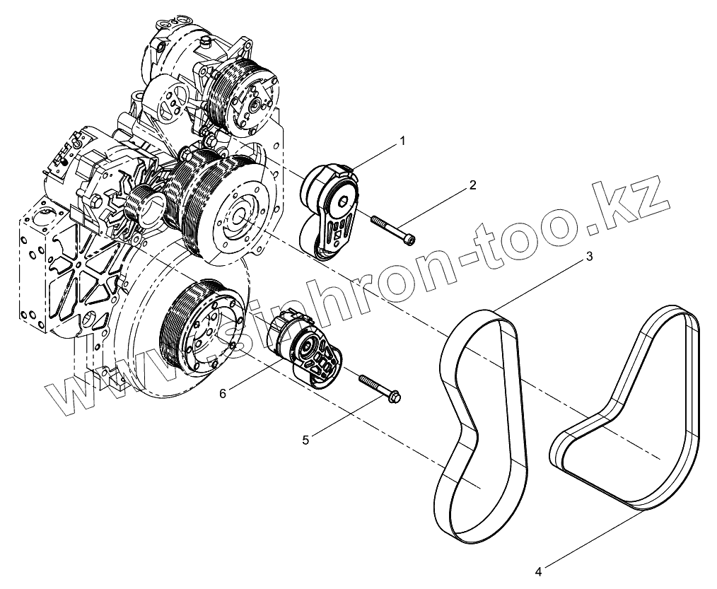 Каталог запасных частей к технике: Weichai WP10 DHL10Q0032. Tensioner and belt asesmbly