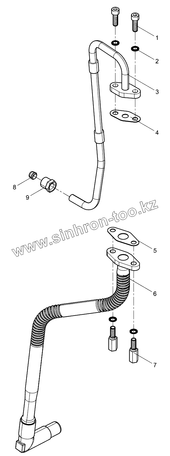 Каталог запасных частей к технике: Weichai WP10 DHL10Q0032. Turbocharger oil pipe group