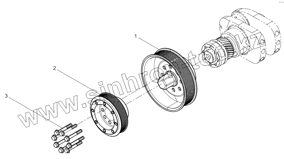 Каталог запасных частей к технике: Weichai WP10 DHL10Q0213. Crankshaft Pulley Group