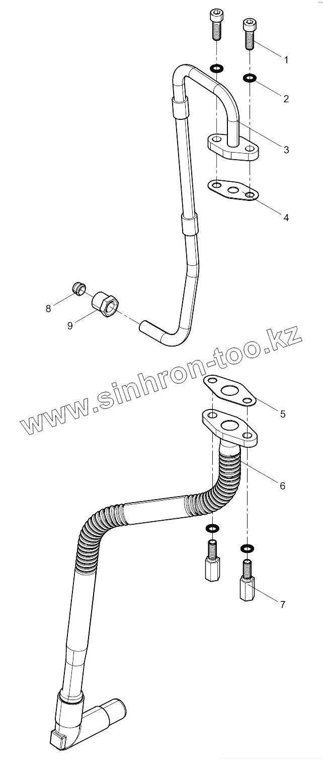 Каталог запасных частей к технике: Weichai WP10 DHL10Q0213. Turbocharger Oil Pipe Group