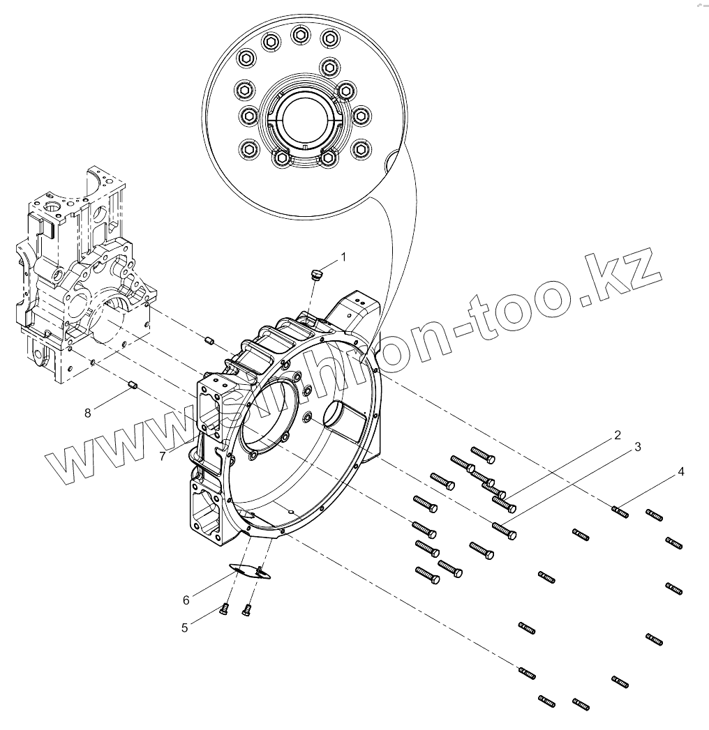 Каталог запасных частей к технике: Weichai WP10 DHP10Q0168. Flywheel Housing Group