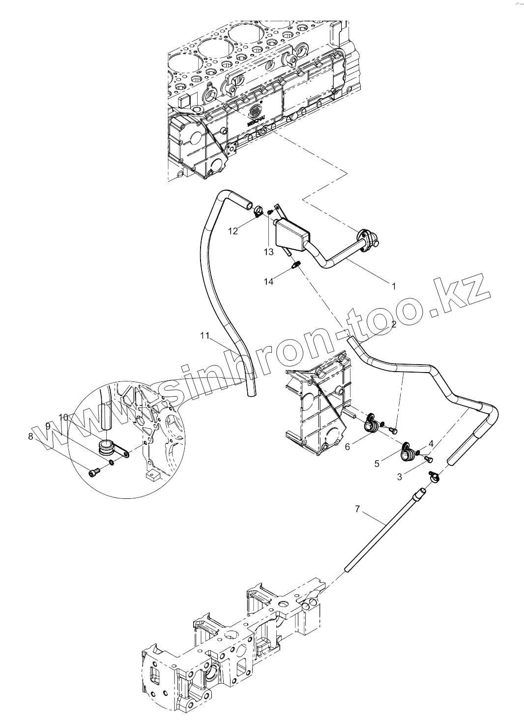 Каталог запасных частей к технике: Weichai WP10 DHP10Q0168. Oil-gas Separator Group