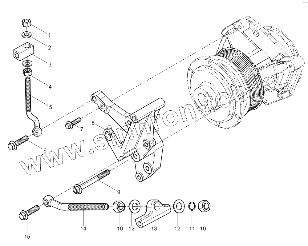 Каталог запасных частей к технике: Weichai WP10NG DHP10Q1667. Alternator Bracket Group